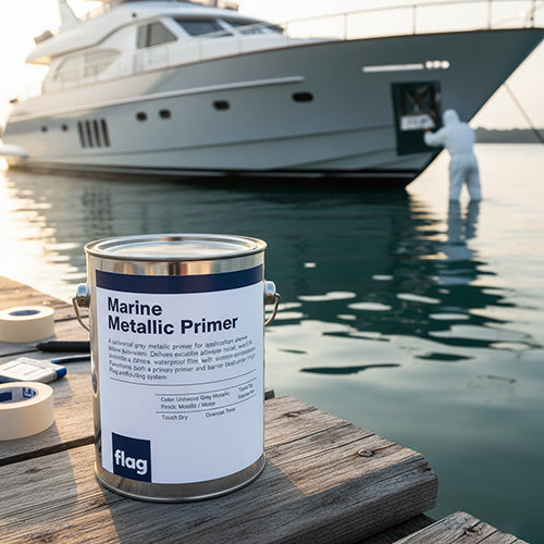 A universal grey metallic primer for application above and below the waterline. Delivers excellent adhesion across metal, wood, and GRP. Provides a dense, waterproof film with strong corrosion resistance. Functions as both a primary primer and barrier coat undert the Flag antifouling system